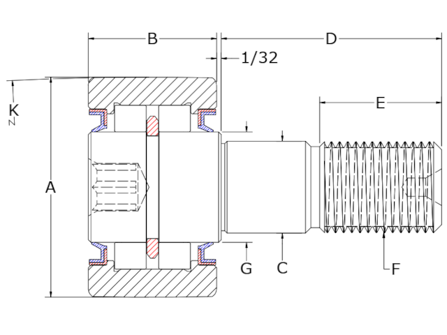 | Roller Width | B | 2.250 in |
