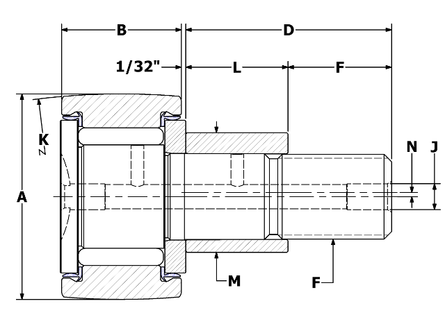 Standard stainless crowned hexed sealed cam follwer