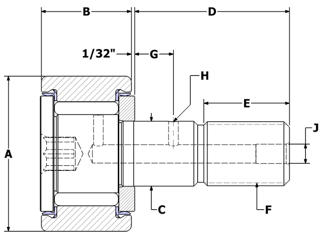 | Oil Hole Diameter | H | 3/32 in |
